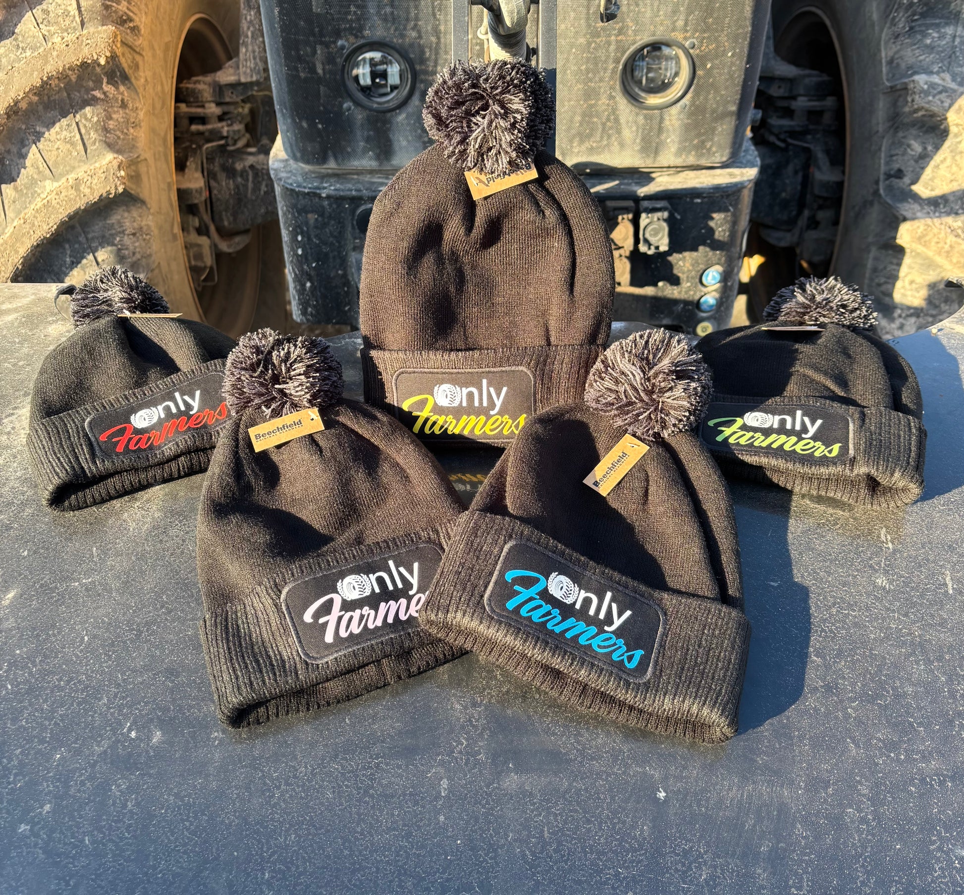 'Only Farmers' Pom Pom Beanie with optional colour logo